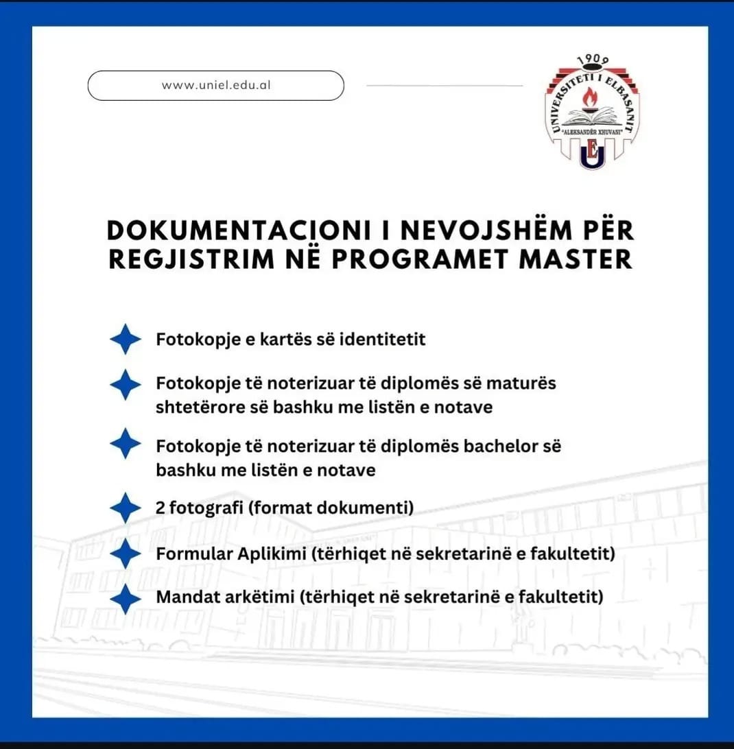 DOKUMENTACIONI I NEVOJSHËM PËR REGJISTRIM NË PROGRAMET E STUDIMIT TË NIVELIT TË PARË DHE TË NIVELIT TË DYTË Dokumentacioni për regjistrim në programet me karakter profesional, bachelor dhe të integruar të nivelit të dytë Raundi i parë Raundi i dytë Raundi i tretë Dokumentacioni për regjistrim në programet master profesional dhe master i shkencave
